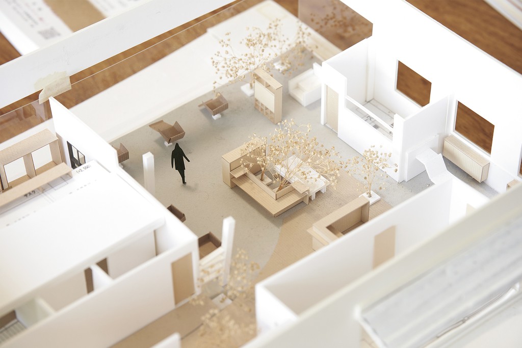 絢子さんが設計した美容室の模型。森の中をコンセプトにしたデザイン。