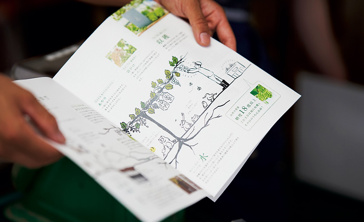 ぶどうの育ち方、生産者の思いを伝えるパンフレットも添えて送る。
